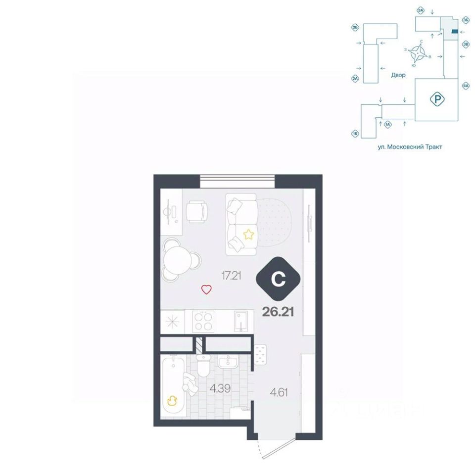 продам 1-к, Московский тракт, 17143 400 800 ₽