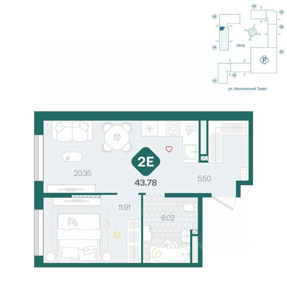 продам 2-к, Московский тракт, 17135 152 000 ₽