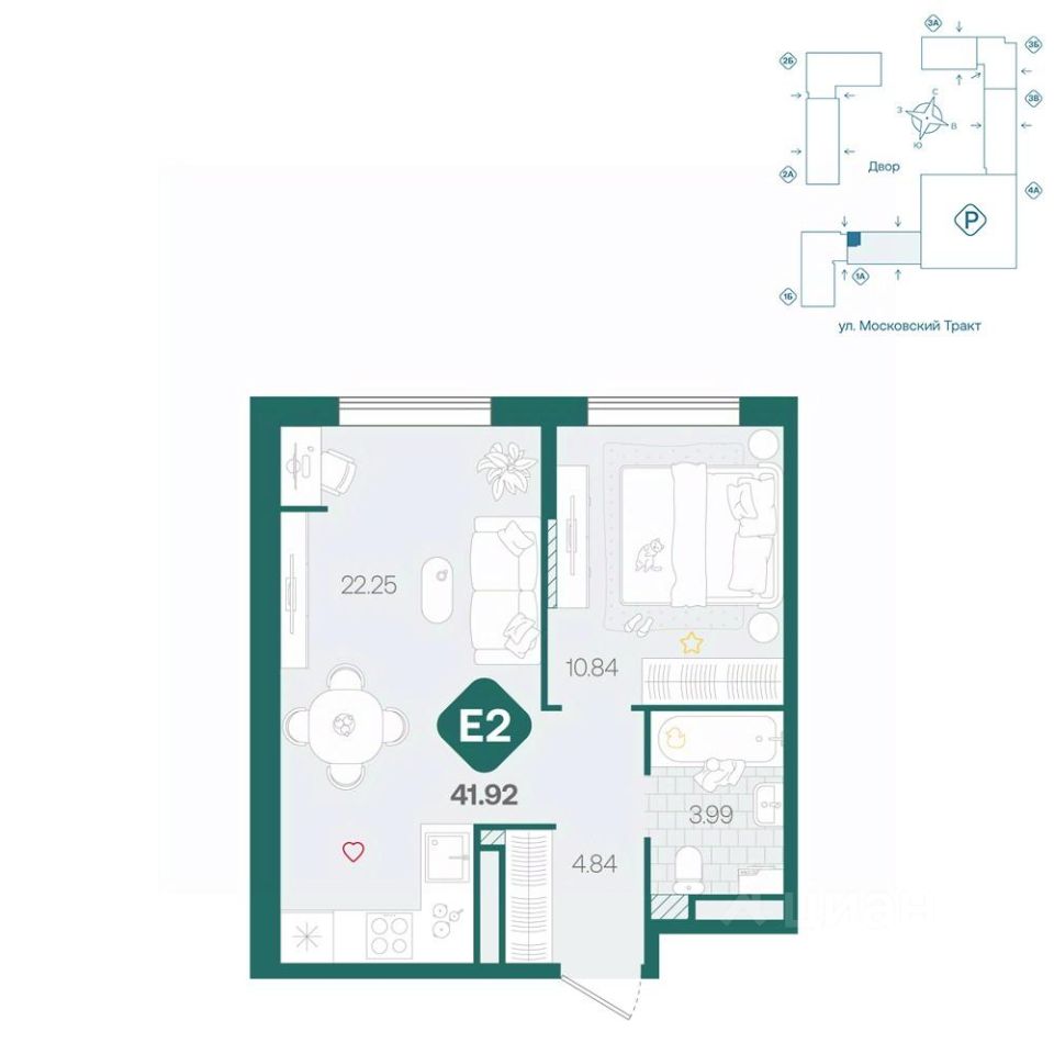 продам 2-к, Московский тракт, 17145 040 000 ₽