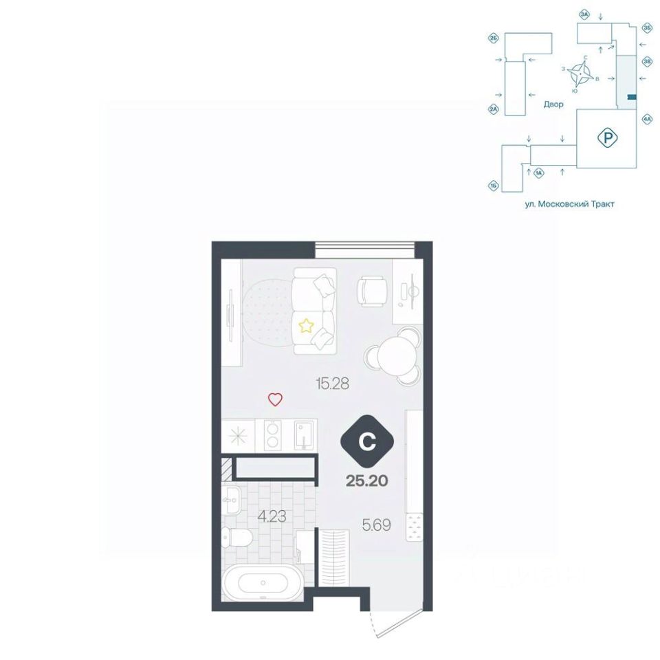 продам 1-к, Московский тракт, 17143 316 000 ₽