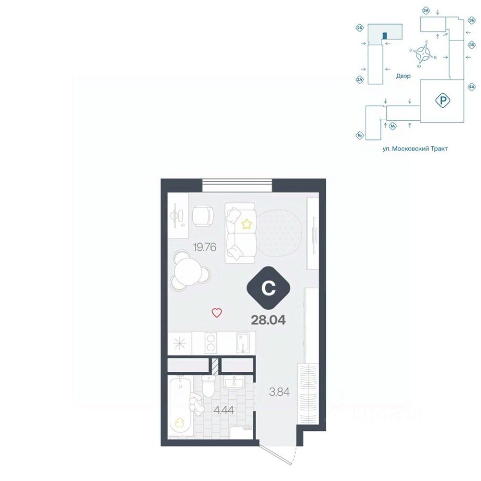 продам 1-к, Московский тракт, 17133 644 000 ₽