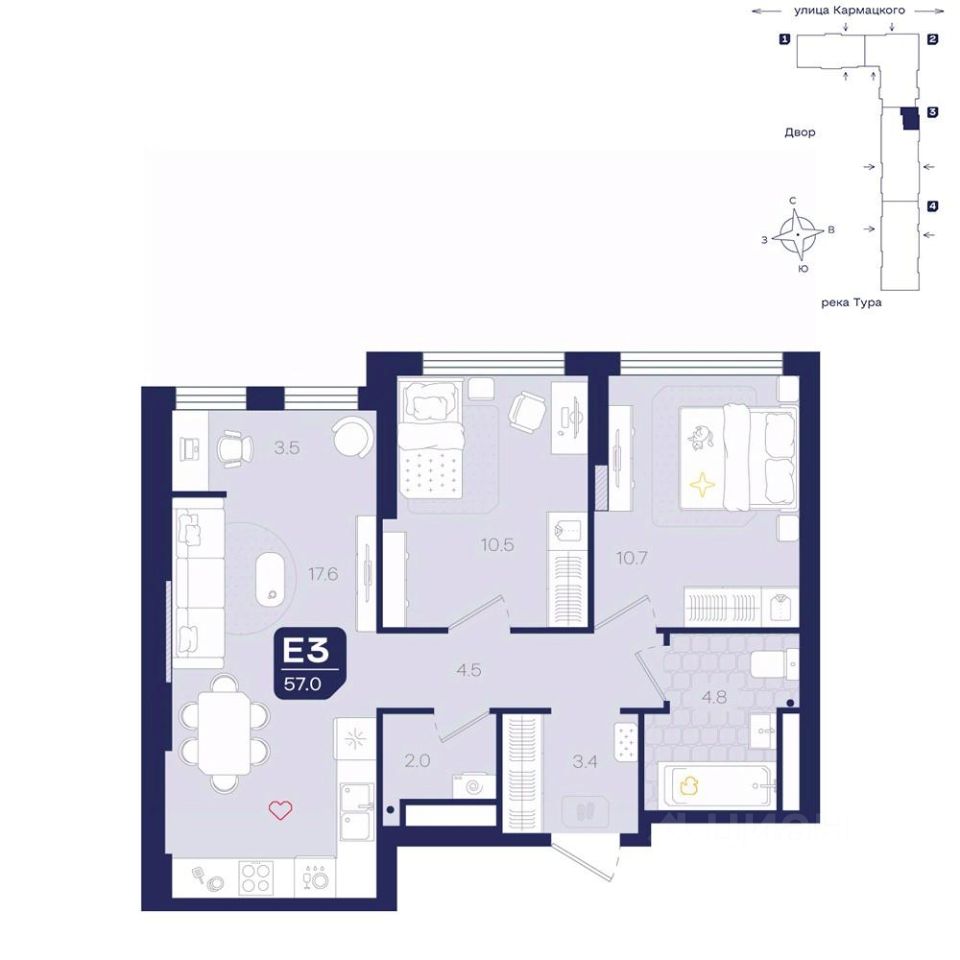 трехкомнатная квартира предлагает идеальное сочетание современного дизайна и функциональности.