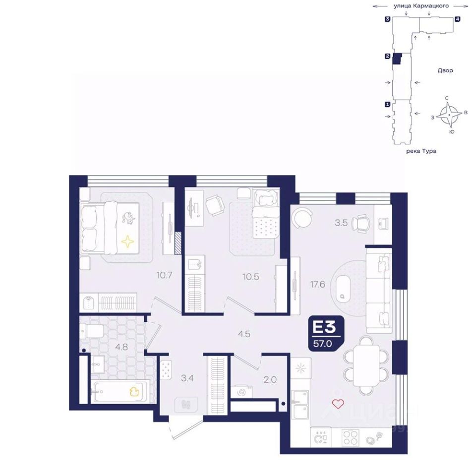 трехкомнатная квартира предлагает идеальное сочетание современного дизайна и функциональности.