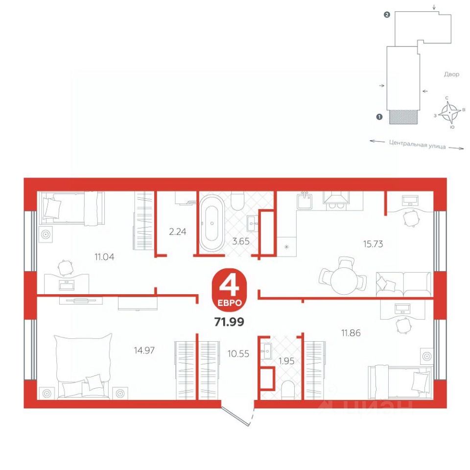 Просторная евро-четырехкомнатная квартира станет настоящим оазисом комфорта и уюта для большой семьи. Эта квартира не просто место для жизни — это пространство, в котором возможно наслаждаться каждой деталью, созданной для удобства и спокойствия.