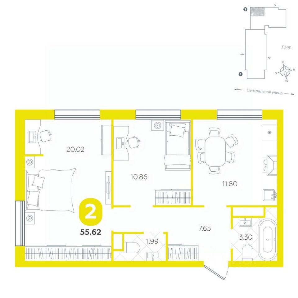 Полноценная двухкомнатная квартира станет идеальным пространством для жизни современной семьи или пары. Она отличается умной планировкой и вниманием к деталям, обеспечивая комфорт и уют во всех уголках дома.