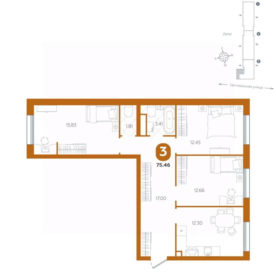 продам 3-к, Центральная, 25 корп. 16 630 400 ₽