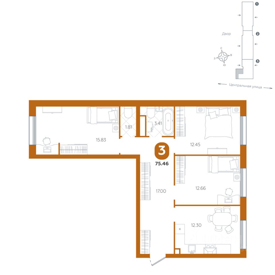 продам 3-к, Центральная, 25 корп. 16 701 600 ₽