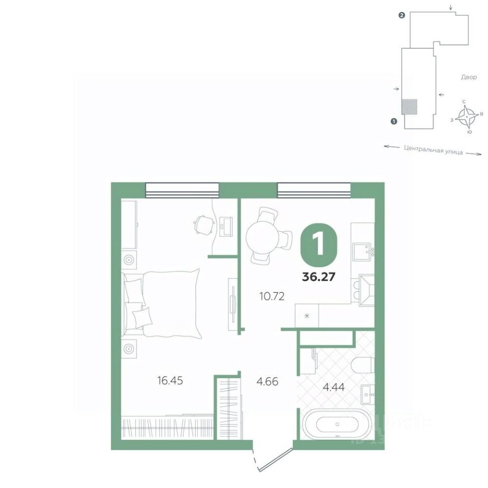 Комфортная однокомнатная квартира с большой спальней и ванной комнатой. Отличный вариант для молодой семьи.