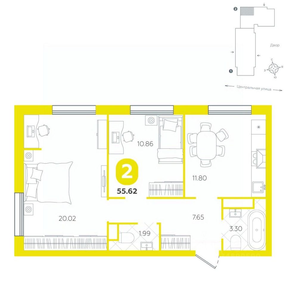 Полноценная двухкомнатная квартира станет идеальным пространством для жизни современной семьи или пары. Она отличается умной планировкой и вниманием к деталям, обеспечивая комфорт и уют во всех уголках дома.