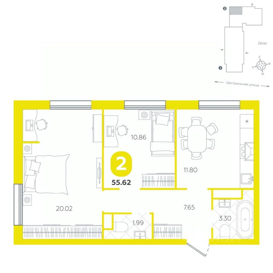 Полноценная двухкомнатная квартира станет идеальным пространством для жизни современной семьи или пары. Она отличается умной планировкой и вниманием к деталям, обеспечивая комфорт и уют во всех уголках дома.