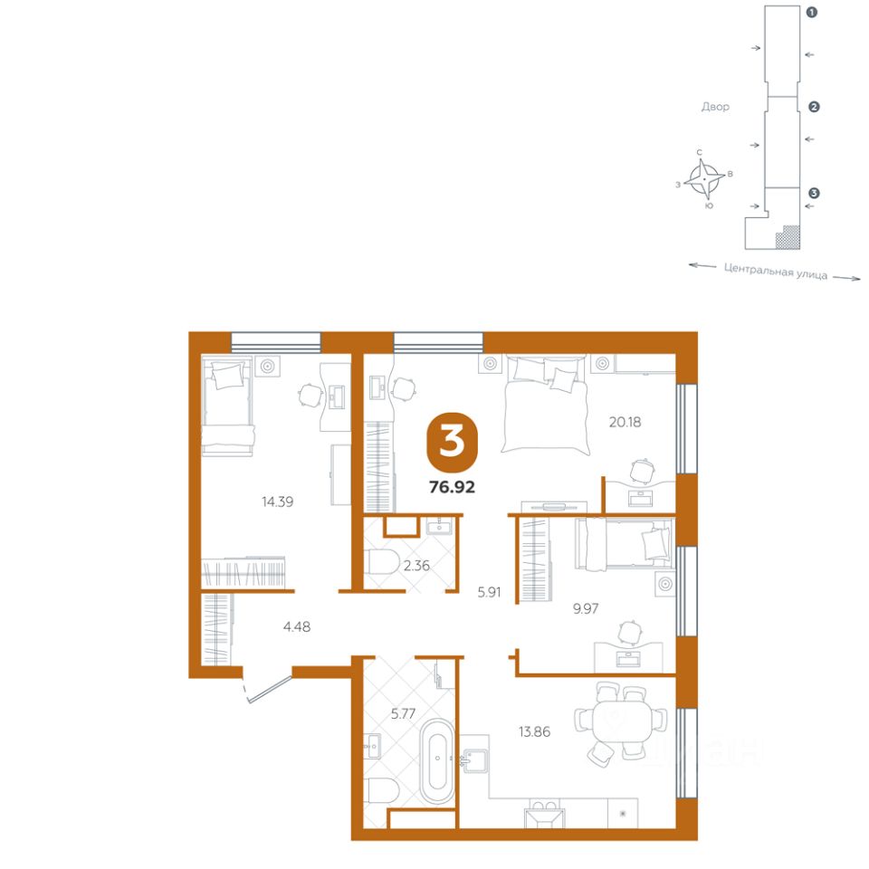 продам 3-к, Центральная, 25 корп. 16 588 000 ₽
