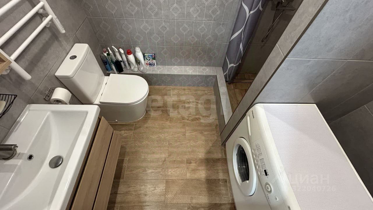 Просторная, светлая студия со свежим ремонтом. Шикарный вид с 9 этажа, который уже точно не застроят. В квартире остается вся мебель и техника: шкаф, диван, кухонный гарнитур с плитой и холодильником. в санузле выполнен современный ремонт из кафеля. Удобный душ. Стиральная машинка остается. Вместительный застекленный балкон 4,5 м², на котором можно сделать рабочую зону или зону отдыха.