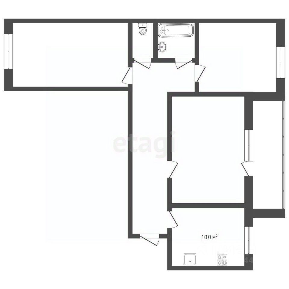 Окна выходят на две стороны.