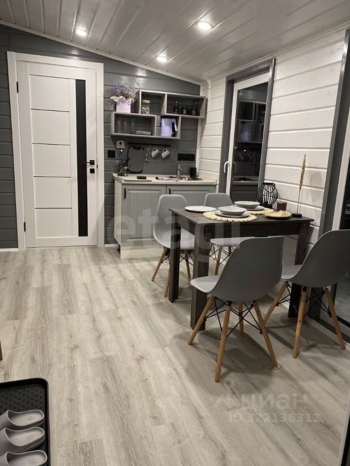 Планировка включает спальню, гостиную с кухонной зоной, санузел и прихожую. Кухня оснащена всей необходимой техникой и мебелью, что делает проживание максимально удобным. Особое внимание уделено зоне отдыха на участке: здесь обустроена мангальная площадка с удобной мебелью, качели и шезлонги, позволяющие наслаждаться природой в любое время года. Территория ухожена, есть место для парковки и потенциального расширения — например, строительства бани или беседки.