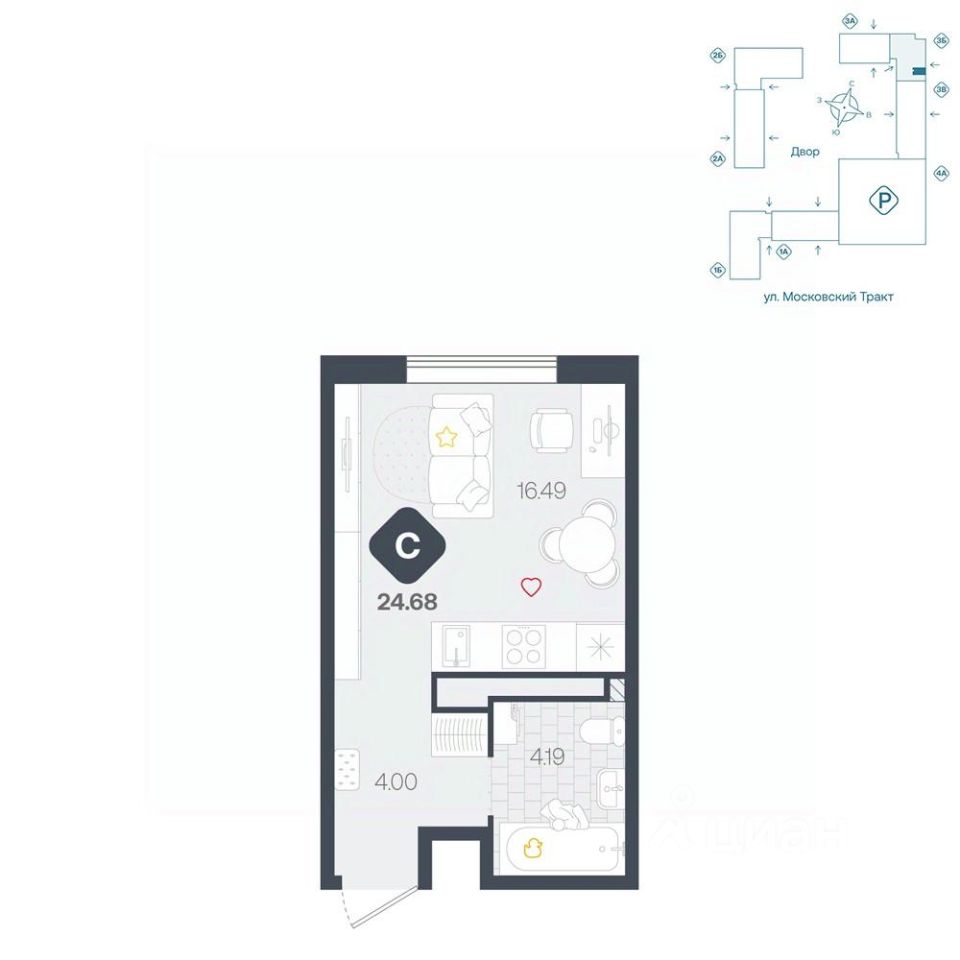 продам 1-к, Московский тракт, 17143 299 200 ₽