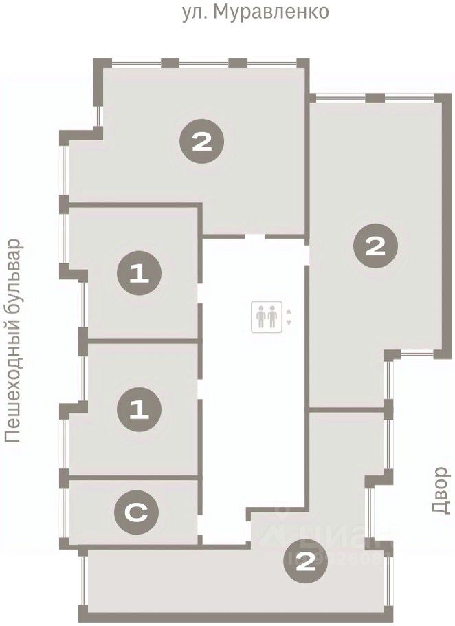 Квартира с кухней-гостиной и двумя спальнями в Доме у озера. Особенности планировки: предчистовая отделка, разнесённые спальни. квартиры в нашей базе: ДМУ03-Ж4.3.5.