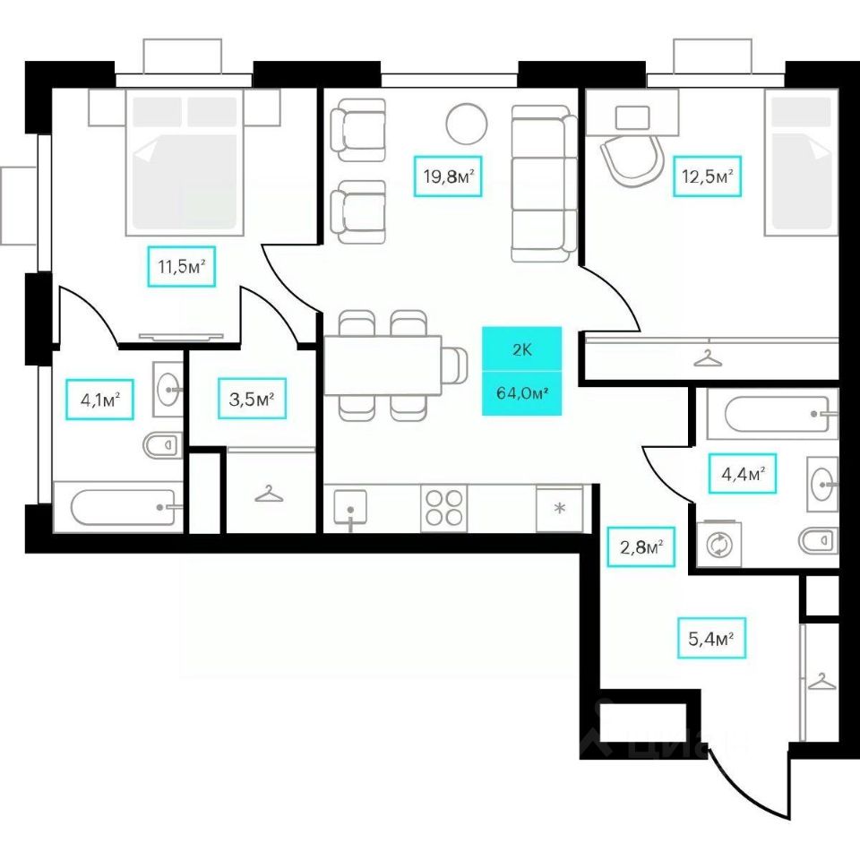 Продаётся 2-комнатная квартира в строящемся доме (Дом 6к2), срок сдачи: III-кв. 2026, общей площадью 64 кв.м., на 9 этаже. Новый жилой комплекс ''Futuro'' от застройщика ''newton'' расположен в г. Тюмень на Ставропольской улице.