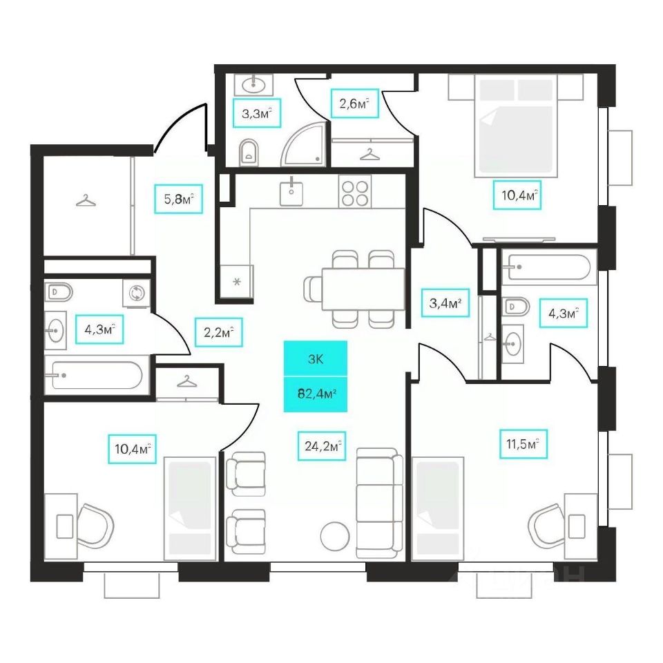 Продаётся 3-комнатная квартира в строящемся доме (Дом 6к2), срок сдачи: III-кв. 2026, общей площадью 82.4 кв.м., на 14 этаже. Новый жилой комплекс ''Futuro'' от застройщика ''newton'' расположен в г. Тюмень на Ставропольской улице.