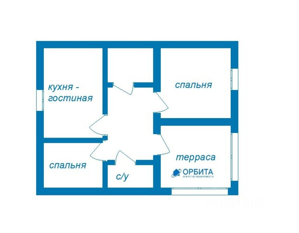 Внутренняя планировка предусматривает две спальни, санузел, гардеробную/кладовую и кухню-гостиную. Это функциональное и удобное пространство для жизни. Водопровод, канализация и электричество уже заведены в дом, что существенно упрощает процесс обустройства.