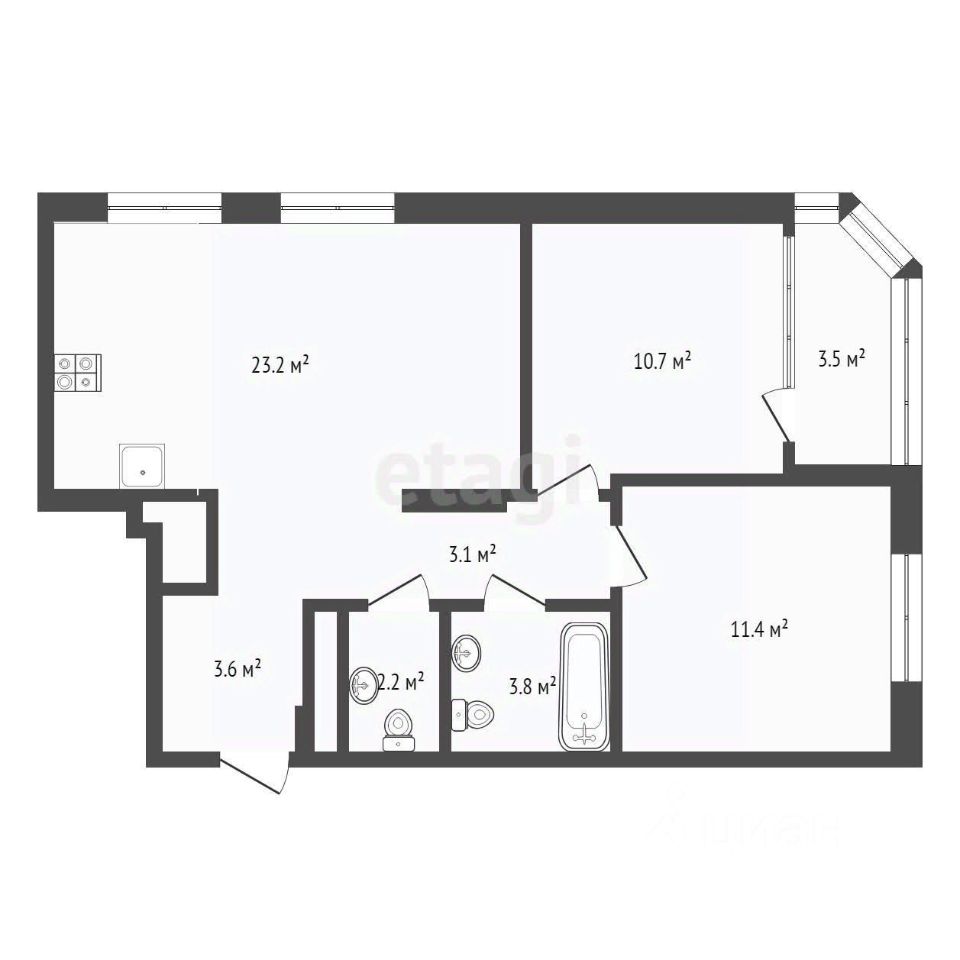 Продается двухкомнатная квартира 61,5 кв.м. рядом с ТЦ''Кристал''. Квартира в улучшенной - черновой отделке. Окна выходят во двор. Большая кухня - гостиная 23 кв.м. ЖК ''Корней'' - это новый, современный, большой комплекс в районе улицы Мельникайте - Федюнинского. В окружении микрорайона есть всё необходимое для спокойной и комфортной жизни: - Три гипермаркета в пешей доступности - Детские площадки для разных возрастов - Медицинский кластер и поликлиника 14 в пешей доступности. - Образовательный комплекс, состоящий из школы всех классов и двух детских садов -Спортивный кластер - физкультурный центр с площадками мульти спорт доступен в любое время года - волейбол, футбол, баскетбол, вело и беговые дорожки.