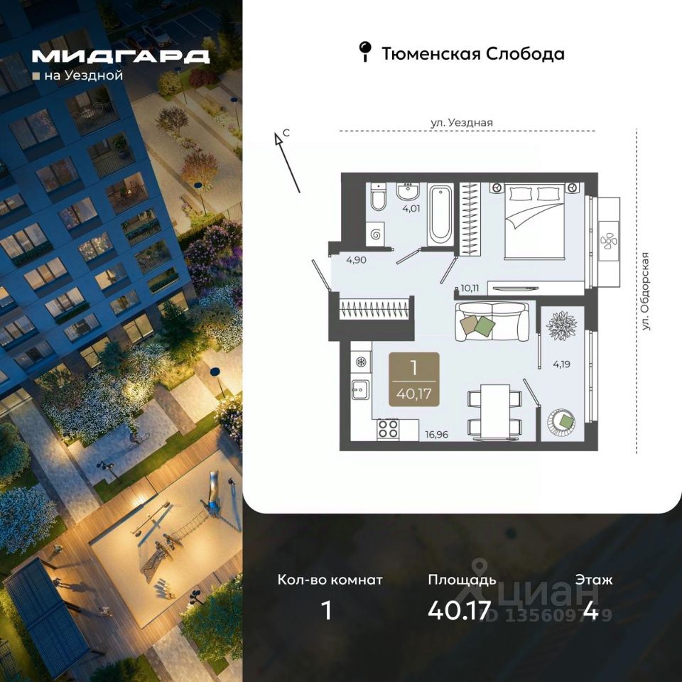 Просторная 1-комн. квартира в ЖК ''Мидгард на Уездной'' на 4 этаже. Квартира без отделки, новый владелец может сделать ремонт по своему дизайн-проекту. Общая площадь: 40.17 кв.м., жилая: 10.11 кв.м., площадь просторной кухни-столовой: 16.96 кв.м. Все окна выходят на одну сторону. В квартире одна лоджия, один совмещенный санузел. Высота потолков 2.72 м.