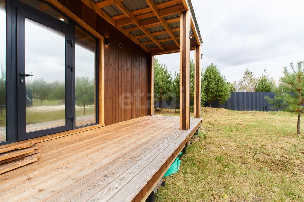 О участке: Статус ИЖС полное право на возведение жилого дома с пропиской. Газификация труба проходит вдоль участка (быстрое подключение!). Электричество заведено в дом Отличная дорога 20-30 минут до Тюмени по асфальту без пробок (Червишевский тракт). Прямоугольная форма удобно для планировки дома, сада и зоны отдыха. Экологически чистая зона тишина, свежий воздух и живописные пейзажи. О доме: Технология строительства - модульно-каркасный, утепление 150мм, обшит внутри и снаружи - имитацией бруса. Кровля - металл. Планировочное решение - 58.