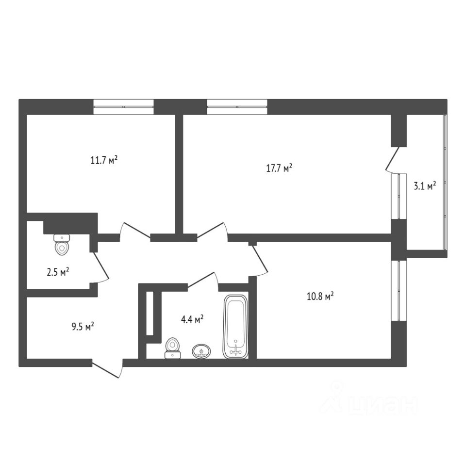 ОБЪЕКТ: Уютная двухкомнатная квартира площадью 57,57 кв.м на шестом этаже. Жилая площадь 28,5 кв.м. Удобная планировка: кухня-гостиная 11,7 кв.м. Комнаты изолированные (10,8, 17,7 кв.м), правильной формы. Большая прихожая (9,5 кв.м) с гардеробной. Из большой комнаты через панорамные двери выход на теплую с панорамными окнами лоджию — дополнительное полезное пространство в квартире под кабинет, мастерскую или лаунж-зону, а с лоджии выход на открытый балкон. Окна выходят на улицу. Санузел совмещенный.
