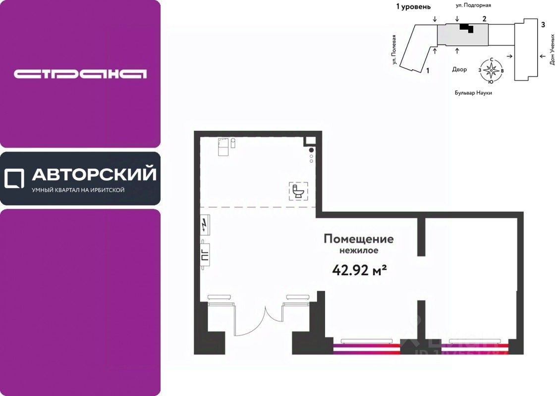 Коммерция напрямую от федерального застройщика ''Страна Девелопмент'' в Тюмени. Подходит для любого вида бизнеса —- магазина, аптеки или ПВЗ. Помещения на первой линии с активным пешеходным трафиком и отдельным входом.