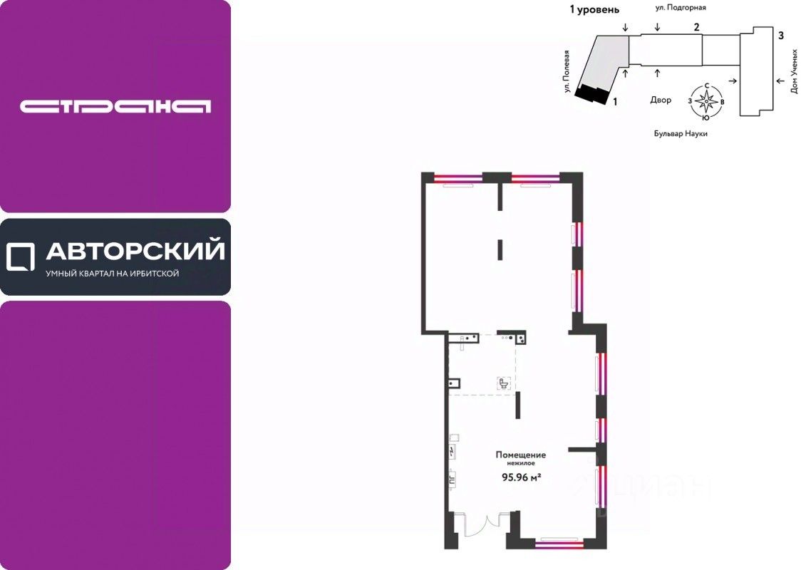 Коммерция напрямую от федерального застройщика ''Страна Девелопмент'' в Тюмени. Подходит для любого вида бизнеса —- магазина, аптеки или ПВЗ. Помещения на первой линии с активным пешеходным трафиком и отдельным входом.