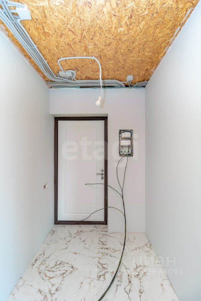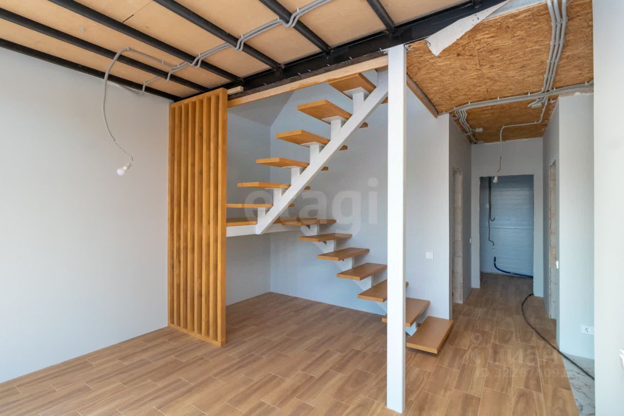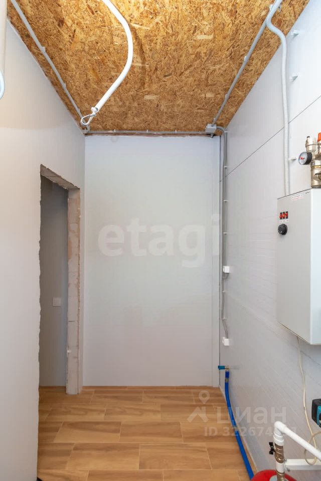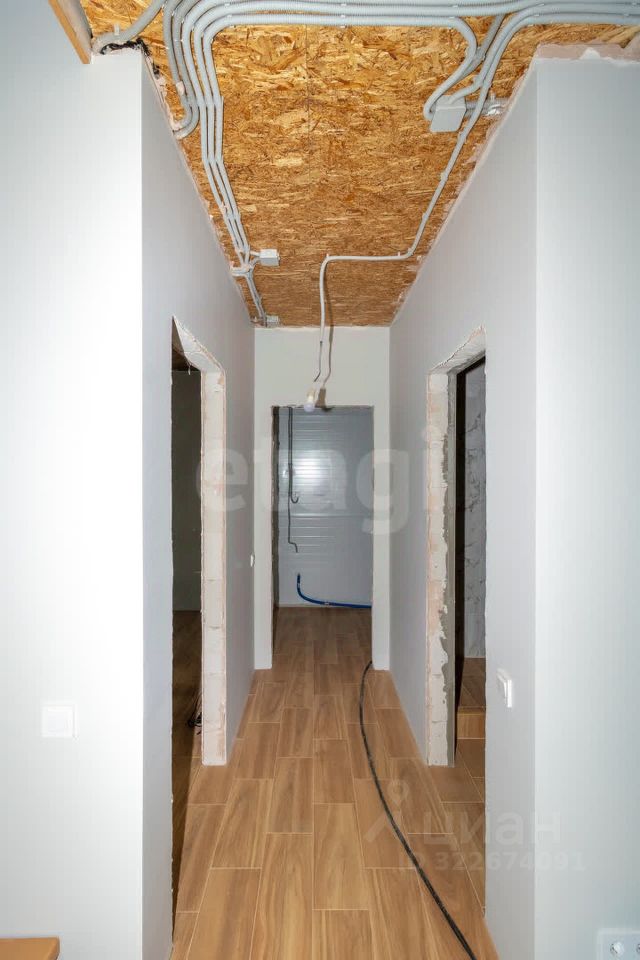 Дом обладает продуманной планировкой, которая включает на первом этаже просторную кухню-гостиную, уютную спальню, современный санузел и техническое помещение. На втором этаже расположены еще одна спальня и кабинет, что позволяет удобно организовать пространство для работы и отдыха.