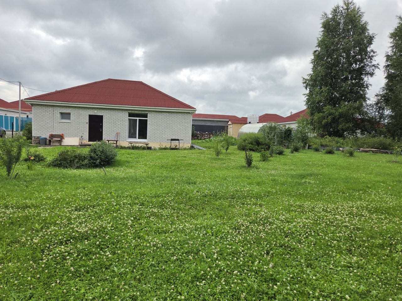 На участке много плодовых деревьев, стоит теплица (премиум класса), хоз.блок.