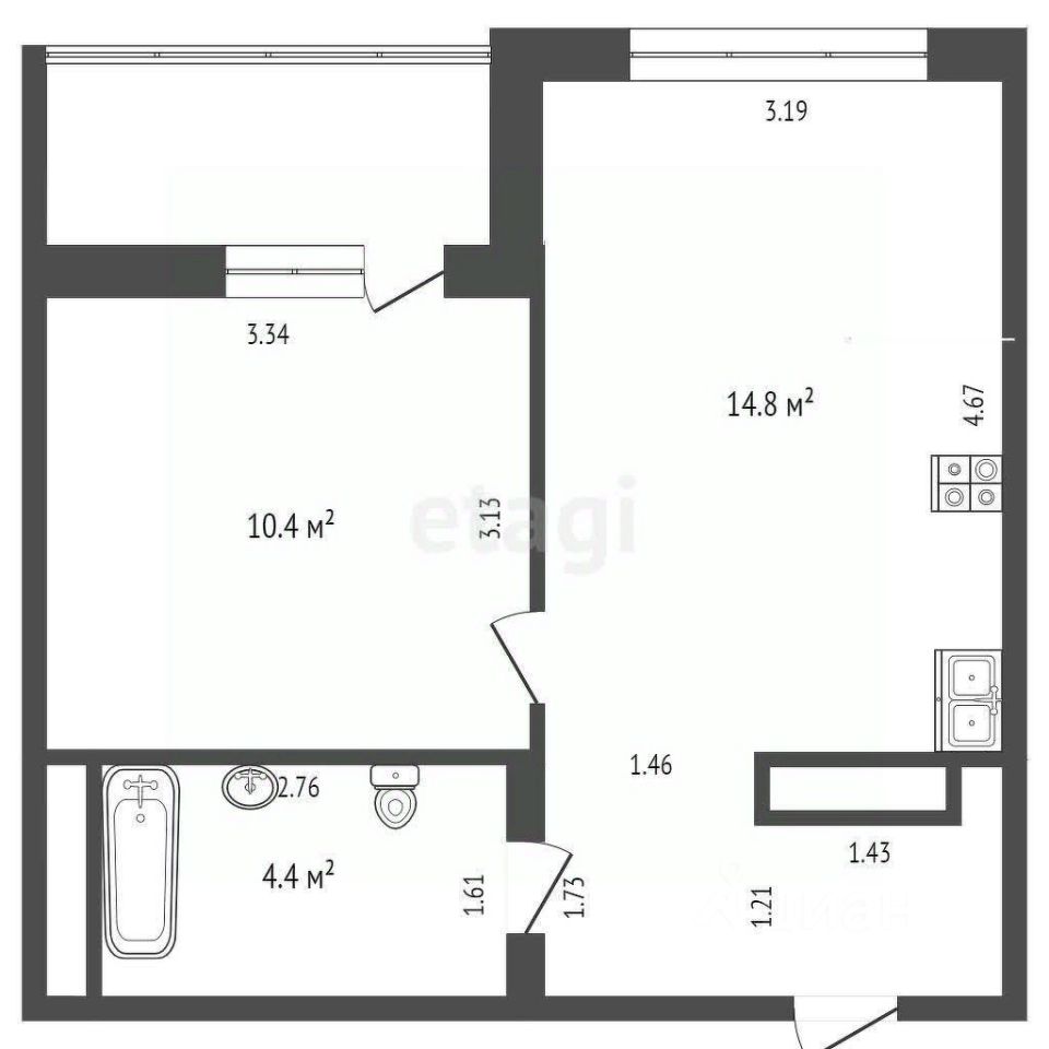 О квартире: Площадь: 35 м² Ремонт: сделан в ванной комнате.