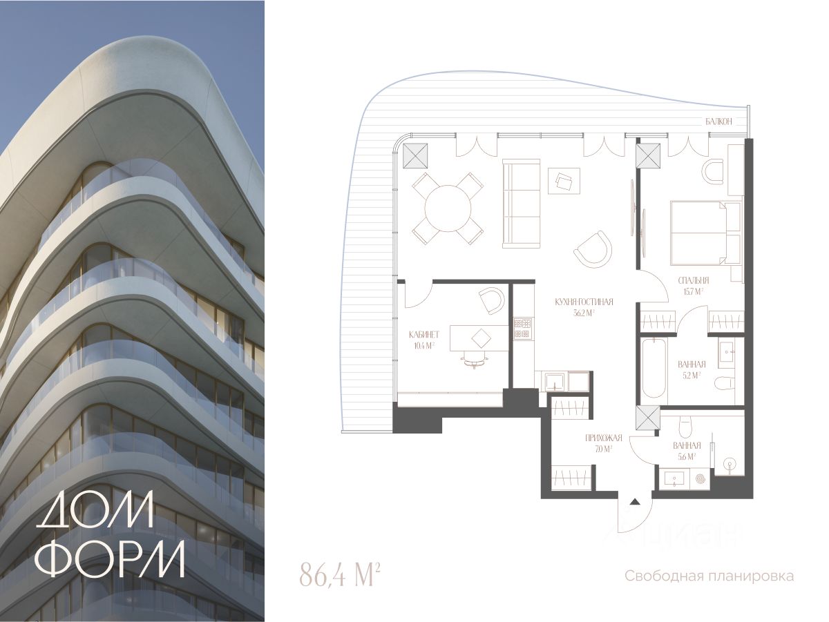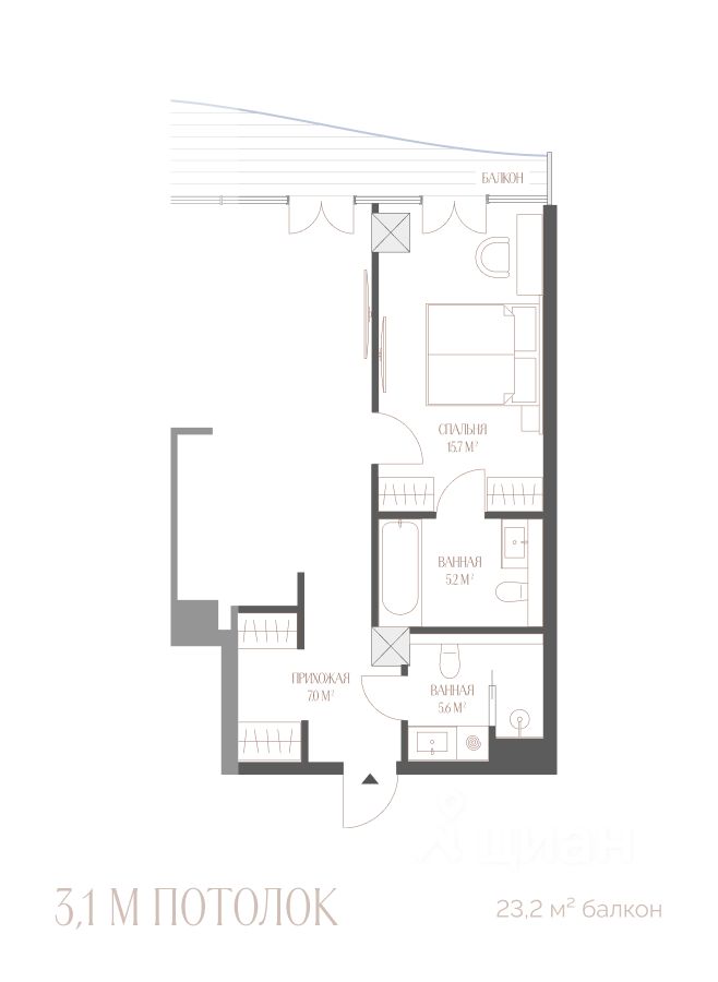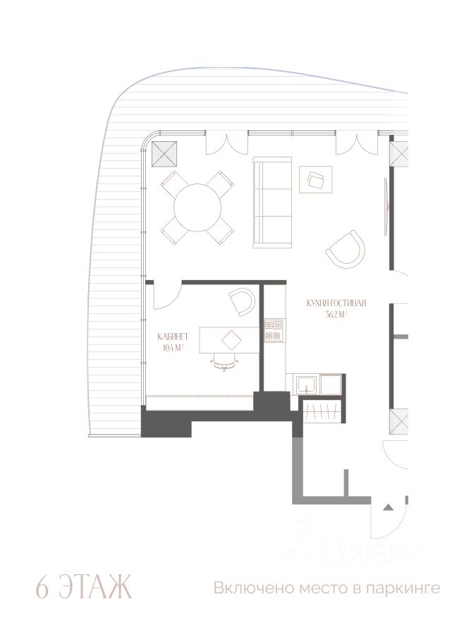 Планировка свободная — без межкомнатных стен, чтобы адаптировать апартаменты под любой жизненный сценарий.