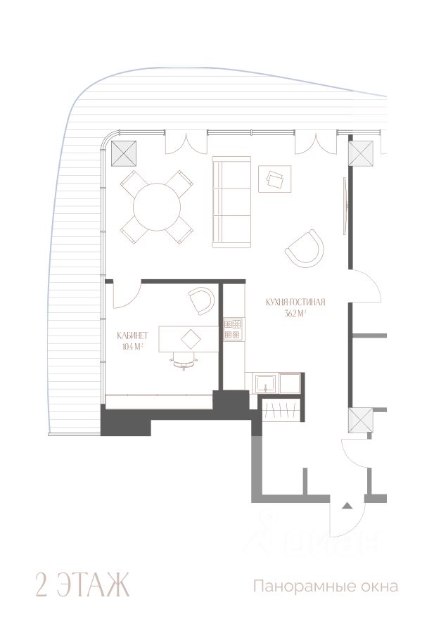 Планировка свободная — без межкомнатных стен, чтобы адаптировать апартаменты под любой жизненный сценарий.