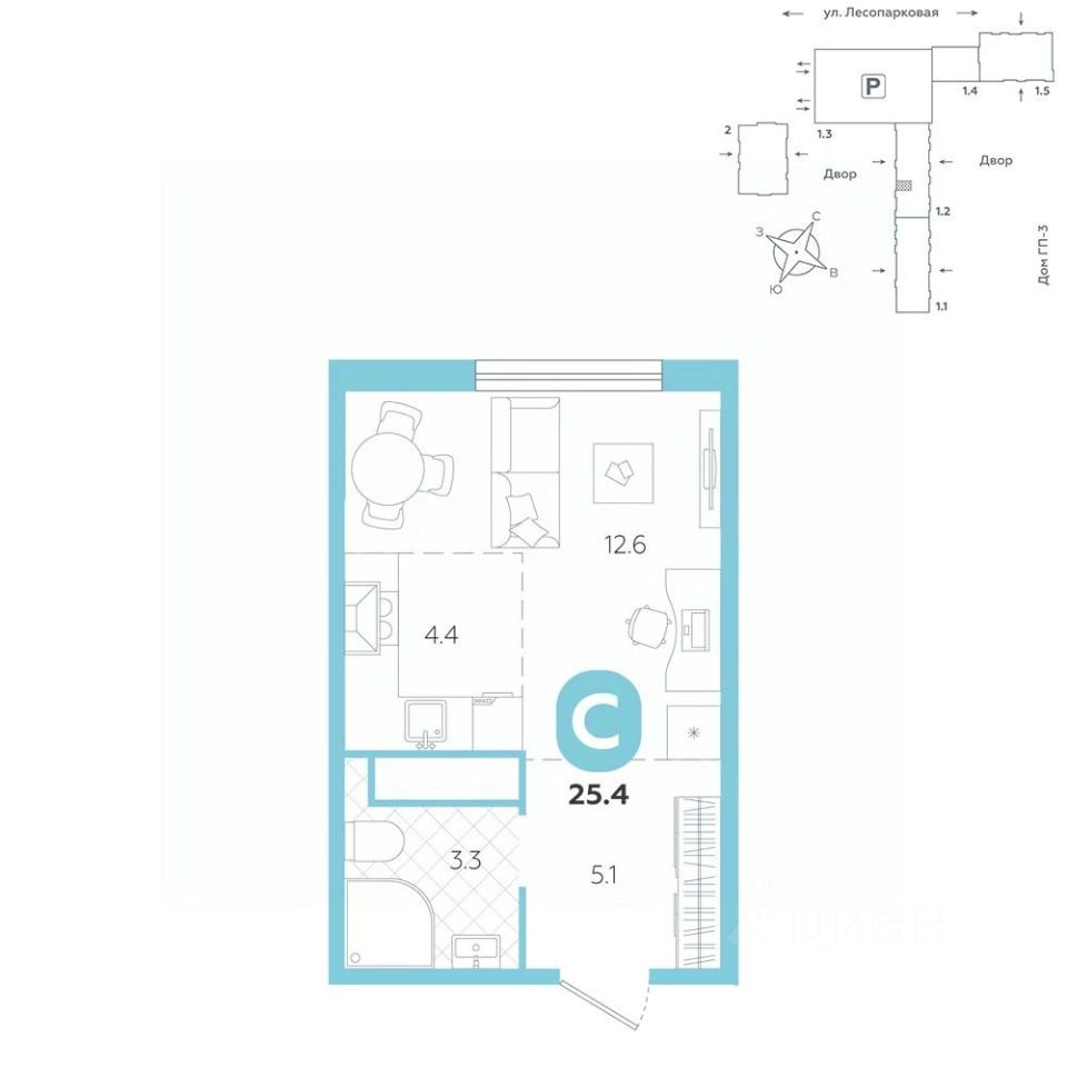 Квартира располагается в ГК ''Чистые Пруды'' от ''Паритет девелопмент''. Это флагманский проект компании в Тюмени. Расположение вдали от шумных улиц и оживленного центра создает ощущение жизни на природе и окружает тишиной и спокойствием. Есть вся необходимая социальная и коммерческая инфраструктура: магазины и сфера услуг на первых этажах. Школы, сады, поликлиника, парки в шаговой доступности. Квартал строится в районе Новой Лесобазы. Рядом выезд на объездную, что существенно экономит время. Поездка до центра города на автомобиле занимает 15-20 минут. Городские кварталы ''Чистые Пруды'' сформирован из домов переменной этажности и многоуровневых паркингов. Ввод 1 очереди строительства запланирован на II кв. 2028 года. Всё благоустройство квартала представлено двумя функциональными зонами: приватная внутри дворовая и общественная. Каждый закрытый двор имеет выход на единую променадную зону - бульвар. Концепция благоустройства основана на принципе модульности, что формирует основную идею приватности. Приватность проекта подчеркивает его особенный климат внутри. Модульное благоустройство позволит максимально эффективно использовать пространство двора и удовлетворить потребности различных категорий жителей. В квартирах базово выполнена улучшенная черновая отделка, которая включает в себя: выровненные стены, стяжка пола с шумоизоляцией, горизонтальная разводка отопления, установлены счетчики с телеметрией, окна с 5-камерным профилем и надежные входные двери. При желании можно добавить ремонт от застройщика и включить его в стоимость ипотеки, что позволит сэкономить на стройматериалах и переехать сразу после получения ключей. Характеристики квартиры: этаж - 5 количество комнат - 1 номер помещения - 181 площадь квартиры - 25,4 кв.мГармоничные пропорции и большие окна наполняют пространство светом, создавая уютную атмосферу. Умное зонирование позволяет удобно организовать как рабочую, так и жилую зоны, что особенно важно для современных жителей. Санузел спроектирован с учетом всех потребностей: здесь есть ванна и место для стиральной машины. Каждый метр квартиры используется с максимальной эффективностью, что делает эту планировку отличным выбором для тех, кто ценит комфорт и удобство.