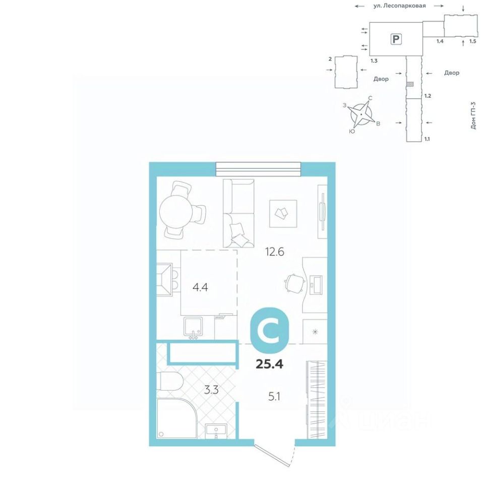 Квартира располагается в ГК ''Чистые Пруды'' от ''Паритет девелопмент''. Это флагманский проект компании в Тюмени. Расположение вдали от шумных улиц и оживленного центра создает ощущение жизни на природе и окружает тишиной и спокойствием. Есть вся необходимая социальная и коммерческая инфраструктура: магазины и сфера услуг на первых этажах. Школы, сады, поликлиника, парки в шаговой доступности. Квартал строится в районе Новой Лесобазы. Рядом выезд на объездную, что существенно экономит время. Поездка до центра города на автомобиле занимает 15-20 минут. Городские кварталы ''Чистые Пруды'' сформирован из домов переменной этажности и многоуровневых паркингов. Ввод 1 очереди строительства запланирован на II кв. 2028 года. Всё благоустройство квартала представлено двумя функциональными зонами: приватная внутри дворовая и общественная. Каждый закрытый двор имеет выход на единую променадную зону - бульвар. Концепция благоустройства основана на принципе модульности, что формирует основную идею приватности. Приватность проекта подчеркивает его особенный климат внутри. Модульное благоустройство позволит максимально эффективно использовать пространство двора и удовлетворить потребности различных категорий жителей. В квартирах базово выполнена улучшенная черновая отделка, которая включает в себя: выровненные стены, стяжка пола с шумоизоляцией, горизонтальная разводка отопления, установлены счетчики с телеметрией, окна с 5-камерным профилем и надежные входные двери. При желании можно добавить ремонт от застройщика и включить его в стоимость ипотеки, что позволит сэкономить на стройматериалах и переехать сразу после получения ключей. Характеристики квартиры: этаж - 9 количество комнат - 1 номер помещения - 221 площадь квартиры - 25,4 кв.мГармоничные пропорции и большие окна наполняют пространство светом, создавая уютную атмосферу. Умное зонирование позволяет удобно организовать как рабочую, так и жилую зоны, что особенно важно для современных жителей. Санузел спроектирован с учетом всех потребностей: здесь есть ванна и место для стиральной машины. Каждый метр квартиры используется с максимальной эффективностью, что делает эту планировку отличным выбором для тех, кто ценит комфорт и удобство.