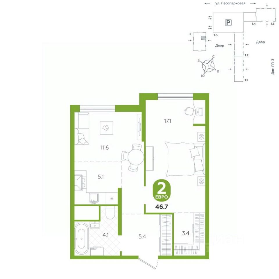 продам 1-к, Лесопарковая, 207 840 000 ₽