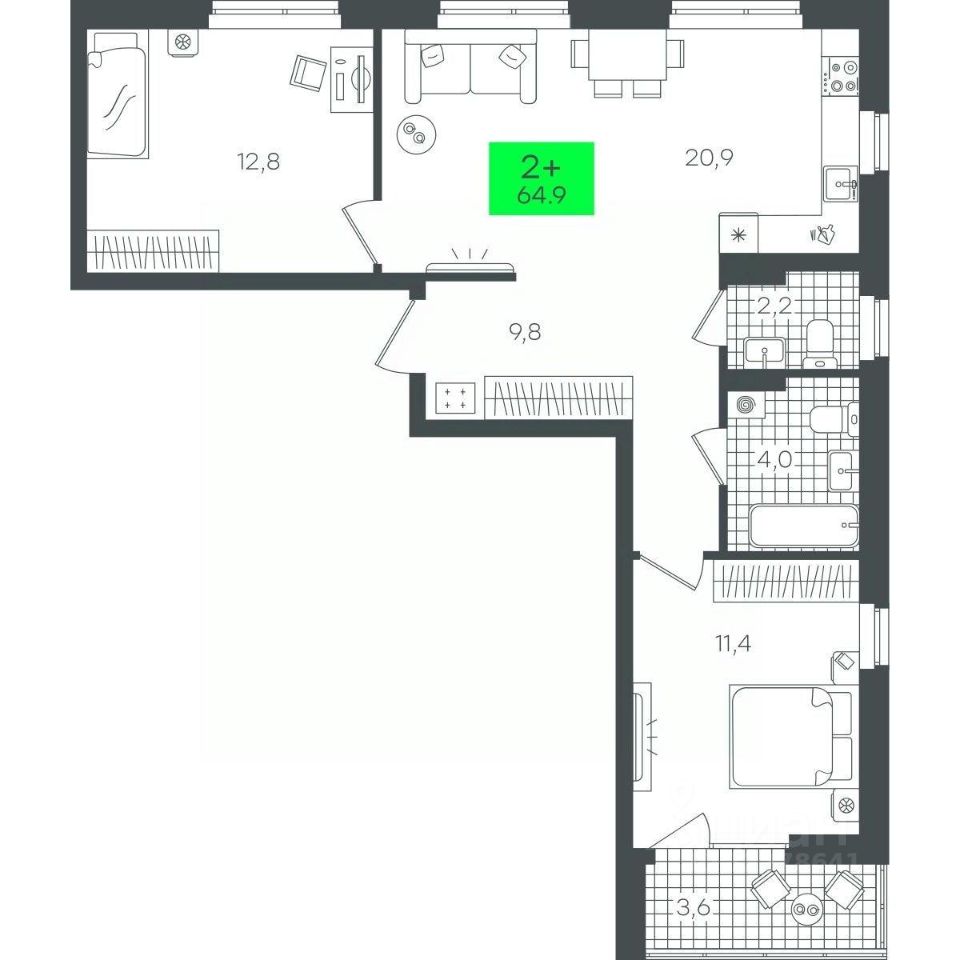 Продаётся 2-комнатная квартира в строящемся доме (3-В7.3 (Малкова, 17)), срок сдачи: III-кв. 2026, общей площадью 64.97 кв.м., на 6 этаже. Компания 4D приступила к строительству нового жилого комплекса ''Гранд квартал''. Новый ЖК находится в зеленой зоне Калининского района, южнее микрорайона Тюменская слобода.