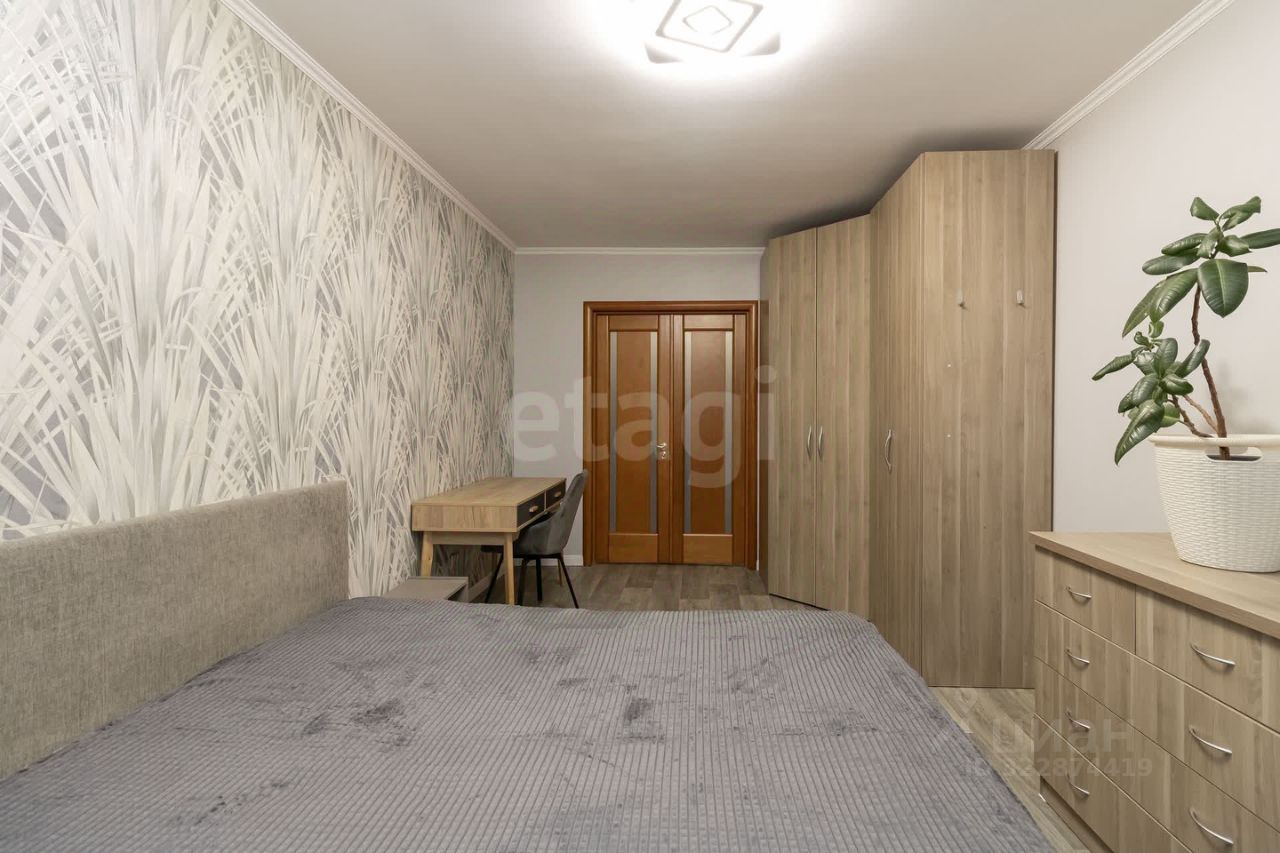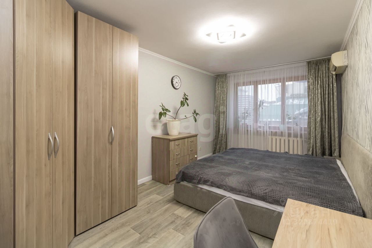 Вторая комната (17,2 м²) — светлая, с современным ремонтом. В ней находятся: большой шкаф, двуспальная кровать (200х200), и рабочая зона. Установлен новый кондиционер с хорошей мощностью, который обдувает всю квартиру (Panasonic). Также есть смарт-телевизор (Samsung). Большое окно выходит во двор с закрытой территорией.