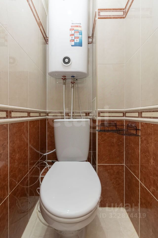 В раздельном санузле — душевая кабина и раковина. Установлен бойлер на 100 литров (Thermex).
