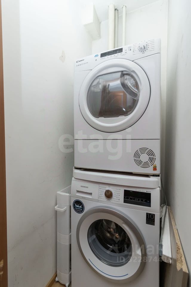 В постирочной расположены стиральная машина с загрузкой на 8 кг (Siemens) и сушильная машина (Candy) с загрузкой 7 кг.