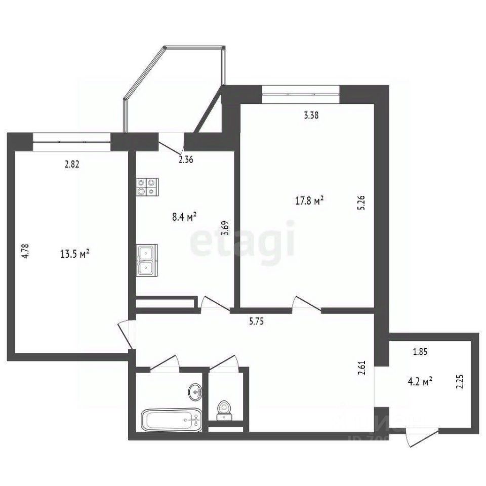 Особенностью данной квартиры является нестандартная планировка: дополнительный холл площадью 4 кв.м. увеличивает общую площадь до 58 кв.м., что позволяет вам с комфортом разместить все необходимые вещи. Также имеется балкон, где можно наслаждаться свежим воздухом и утренним кофе.