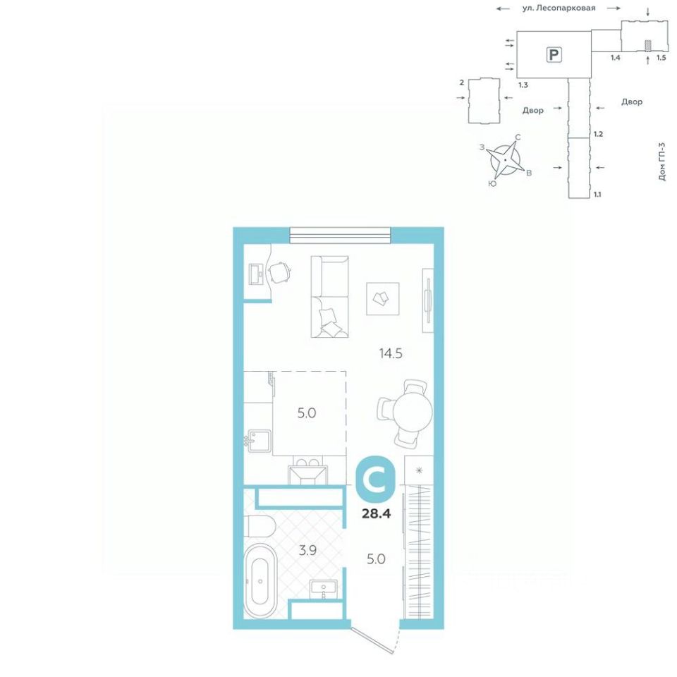 Квартира располагается в ГК ''Чистые Пруды'' от ''Паритет девелопмент''. Это флагманский проект компании в Тюмени. Расположение вдали от шумных улиц и оживленного центра создает ощущение жизни на природе и окружает тишиной и спокойствием. Есть вся необходимая социальная и коммерческая инфраструктура: магазины и сфера услуг на первых этажах. Школы, сады, поликлиника, парки в шаговой доступности. Квартал строится в районе Новой Лесобазы. Рядом выезд на объездную, что существенно экономит время. Поездка до центра города на автомобиле занимает 15-20 минут. Городские кварталы ''Чистые Пруды'' сформирован из домов переменной этажности и многоуровневых паркингов. Ввод 1 очереди строительства запланирован на II кв. 2028 года. Всё благоустройство квартала представлено двумя функциональными зонами: приватная внутри дворовая и общественная. Каждый закрытый двор имеет выход на единую променадную зону - бульвар. Концепция благоустройства основана на принципе модульности, что формирует основную идею приватности. Приватность проекта подчеркивает его особенный климат внутри. Модульное благоустройство позволит максимально эффективно использовать пространство двора и удовлетворить потребности различных категорий жителей. В квартирах базово выполнена улучшенная черновая отделка, которая включает в себя: выровненные стены, стяжка пола с шумоизоляцией, горизонтальная разводка отопления, установлены счетчики с телеметрией, окна с 5-камерным профилем и надежные входные двери. При желании можно добавить ремонт от застройщика и включить его в стоимость ипотеки, что позволит сэкономить на стройматериалах и переехать сразу после получения ключей. Характеристики квартиры: этаж - 14 количество комнат - 1 номер помещения - 405 площадь квартиры - 28,4 кв.мГармоничные пропорции и большие окна наполняют пространство светом, создавая уютную атмосферу. Умное зонирование позволяет удобно организовать как рабочую, так и жилую зоны, что особенно важно для современных жителей. Санузел спроектирован с учетом всех потребностей: здесь есть ванна и место для стиральной машины. Каждый метр квартиры используется с максимальной эффективностью, что делает эту планировку отличным выбором для тех, кто ценит комфорт и удобство.