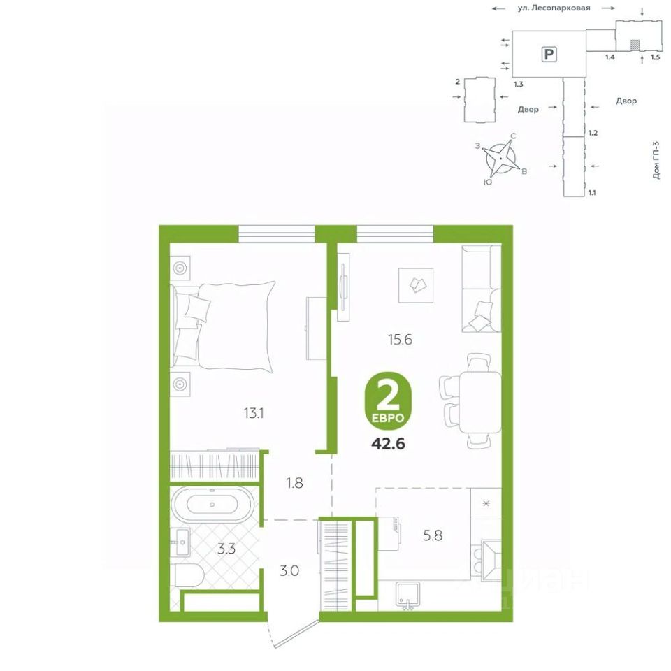 Квартира располагается в ГК ''Чистые Пруды'' от ''Паритет девелопмент''. Это флагманский проект компании в Тюмени. Расположение вдали от шумных улиц и оживленного центра создает ощущение жизни на природе и окружает тишиной и спокойствием. Есть вся необходимая социальная и коммерческая инфраструктура: магазины и сфера услуг на первых этажах. Школы, сады, поликлиника, парки в шаговой доступности. Квартал строится в районе Новой Лесобазы. Рядом выезд на объездную, что существенно экономит время. Поездка до центра города на автомобиле занимает 15-20 минут. Городские кварталы ''Чистые Пруды'' сформирован из домов переменной этажности и многоуровневых паркингов. Ввод 1 очереди строительства запланирован на II кв. 2028 года. Всё благоустройство квартала представлено двумя функциональными зонами: приватная внутри дворовая и общественная. Каждый закрытый двор имеет выход на единую променадную зону - бульвар. Концепция благоустройства основана на принципе модульности, что формирует основную идею приватности. Приватность проекта подчеркивает его особенный климат внутри. Модульное благоустройство позволит максимально эффективно использовать пространство двора и удовлетворить потребности различных категорий жителей. В квартирах базово выполнена улучшенная черновая отделка, которая включает в себя: выровненные стены, стяжка пола с шумоизоляцией, горизонтальная разводка отопления, установлены счетчики с телеметрией, окна с 5-камерным профилем и надежные входные двери. При желании можно добавить ремонт от застройщика и включить его в стоимость ипотеки, что позволит сэкономить на стройматериалах и переехать сразу после получения ключей. Характеристики квартиры: этаж - 14 количество комнат - 2 номер помещения - 406 площадь квартиры - 42,6 кв.мГармоничные пропорции и большие окна наполняют пространство светом, создавая уютную атмосферу. Умное зонирование позволяет удобно организовать как рабочую, так и жилую зоны, что особенно важно для современных жителей. Санузел спроектирован с учетом всех потребностей: здесь есть ванна и место для стиральной машины. Каждый метр квартиры используется с максимальной эффективностью, что делает эту планировку отличным выбором для тех, кто ценит комфорт и удобство.