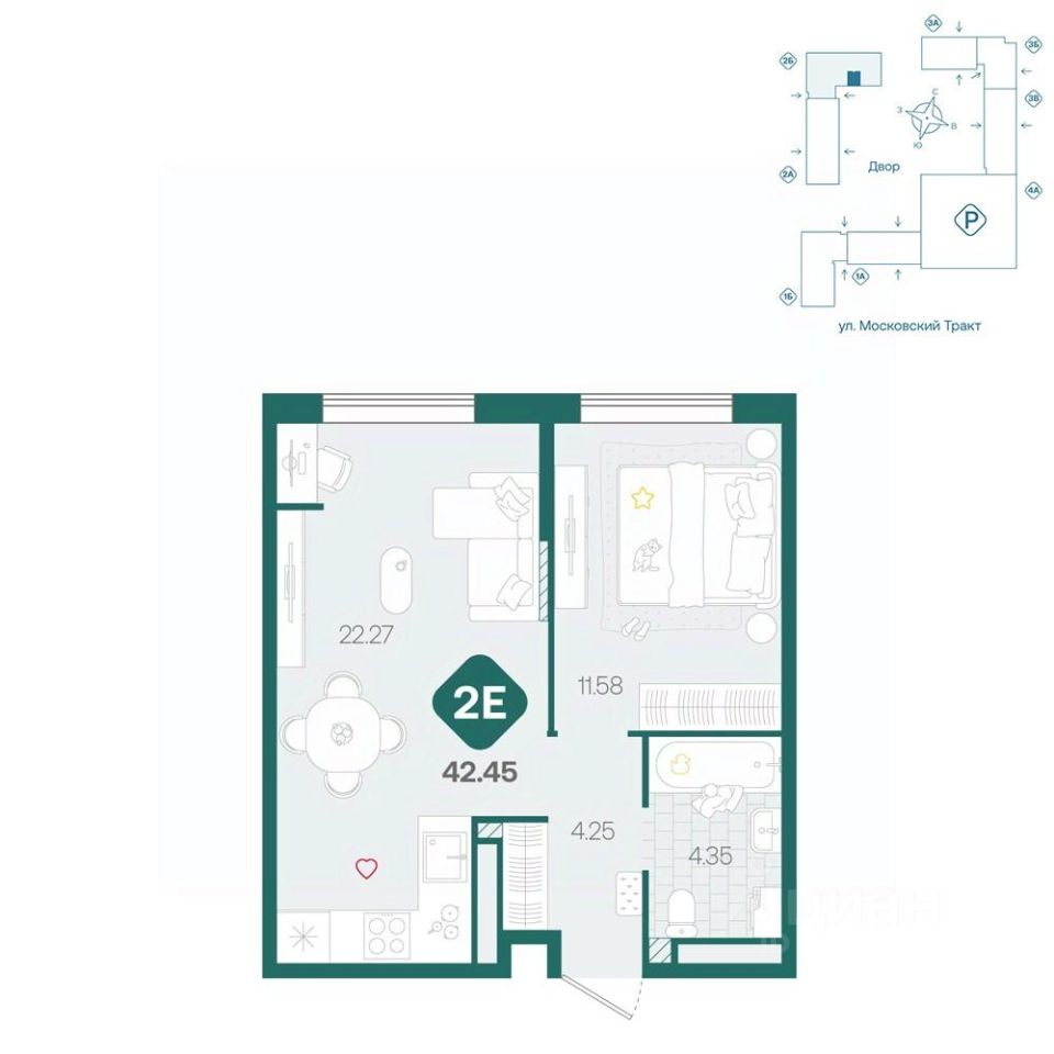 продам 2-к, Московский тракт, 17135 104 000 ₽