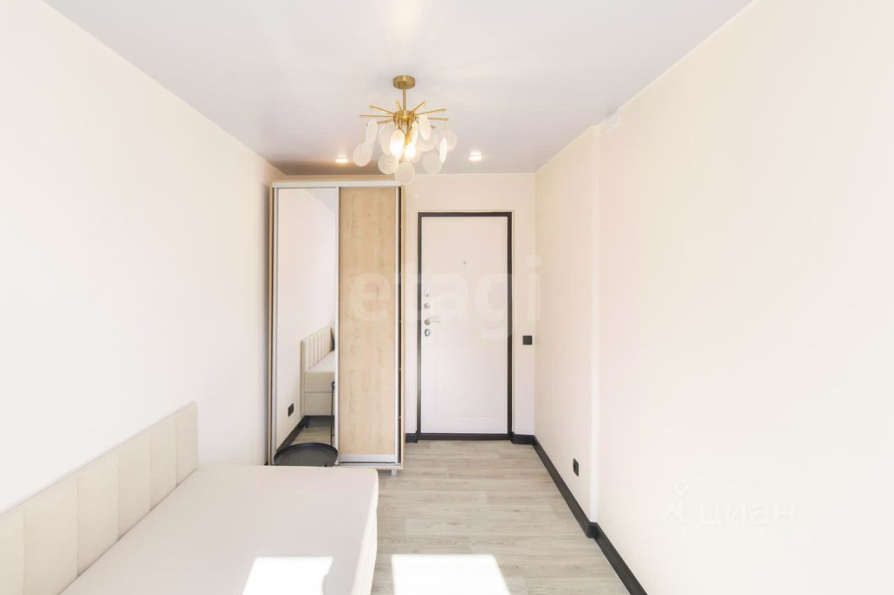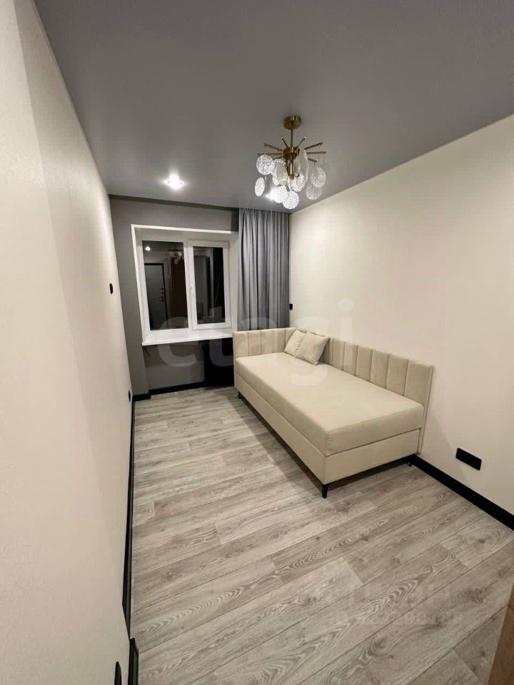 В комнате выполнен хороший современный ремонт, в отделке использовались светлые оттенки.