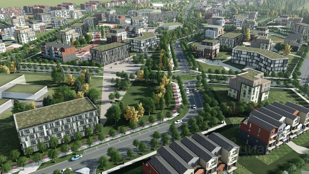 На первых этажах зданий расположены квартиры с террасами, на верхних этажах —