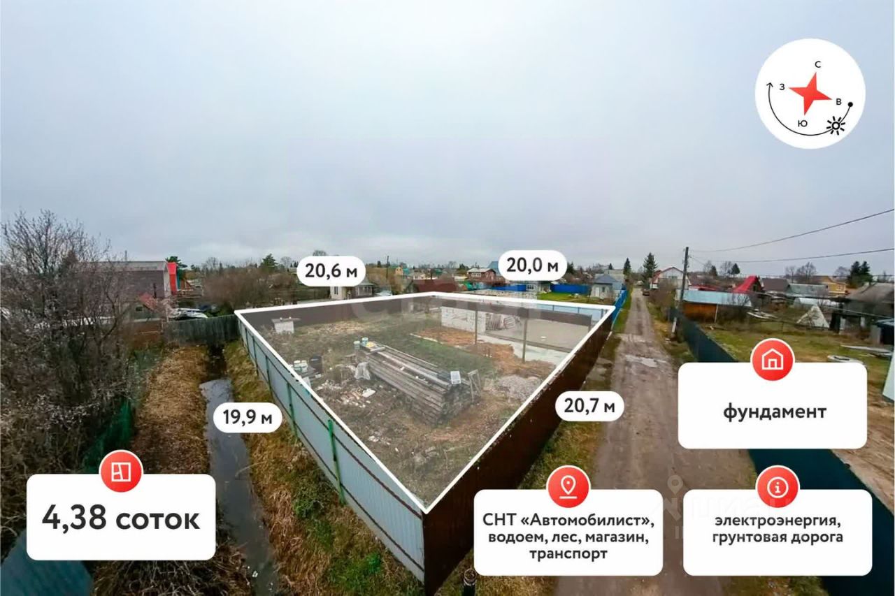 Электричество уже подключено и заведено на участок, что значительно упрощает процесс строительства. На территории имеется фундамент размером 6х6 метров и шириной 40 см, что позволяет вам сразу приступить к строительству жилого дома с возможностью его дальнейшей регистрации и получения прописки.