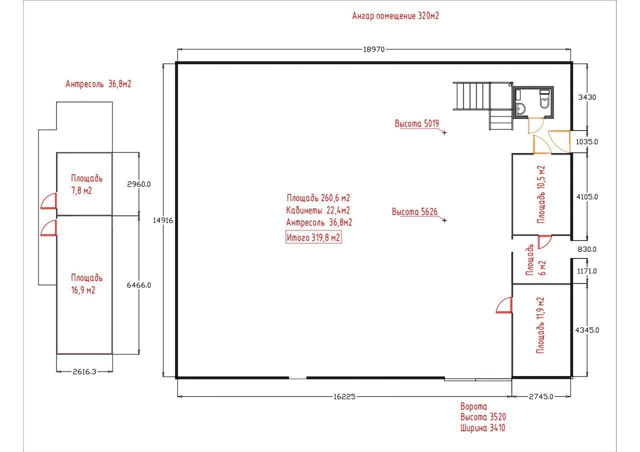 Произведён ремонт , полы бетон. Два кабинета, антресоль, свой с/у. Высота потолков 5,5м. Параметры ворот: высота 3,5м. ширина 3,4м.