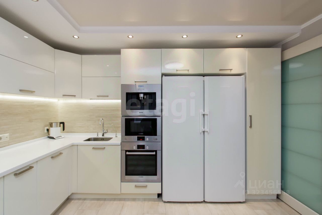 О квартире: Планировка — распашонка с просторной кухней-гостиной (15 м²), тремя изолированными спальнями и уютной гостиной-зоной отдыха. Кухня оборудована встроенной мебелью и техникой премиальных брендов Bosch и Gorenje: варочная панель, духовой шкаф, микроволновка, кофемашина, посудомоечная машина (60 см) и вместительный холодильник всё остаётся новым владельцам. В квартире установлены датчики протечки во всех мокрых точках, фильтр грубой очистки воды, проточные бойлеры. Раздельный санузел, продуманная гардеробная, утеплённый балкон, переоборудованный в функциональную хозяйственную комнату для сушки и глажки белья. В каждой комнате — кондиционер, качественные двухкамерные стеклопакеты (три камеры), широкий коридор и много света.